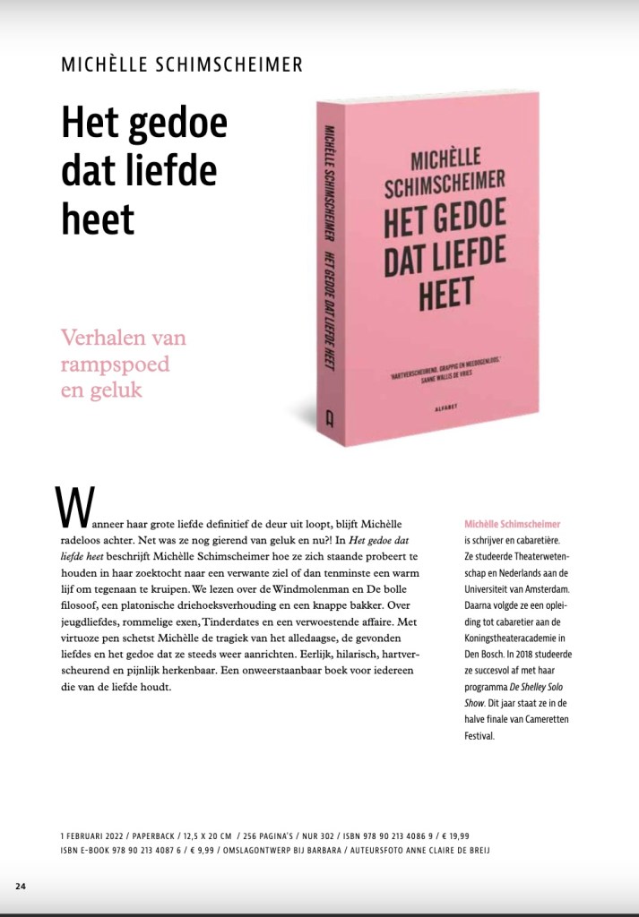 Het Gedoe dat Liefde Heet Verschijningsdatum op 1 februari 20222 Delen: Delen op X (Opent in een nieuw venster) X Share op Facebook (Opent in een nieuw venster) Facebook Vind-ik-leuk Aan het laden...